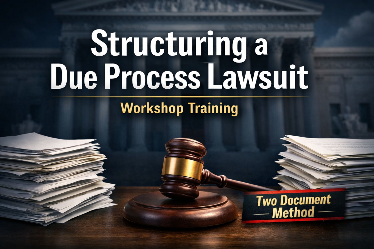 Structuring a Due Process Lawsuit Workshop teaches the new two-document method, in which procedural due process violations and substantive due process damages are drafted separately. This structure prevents confusion, preserves violations, and stops courts from hiding behind the confusion.